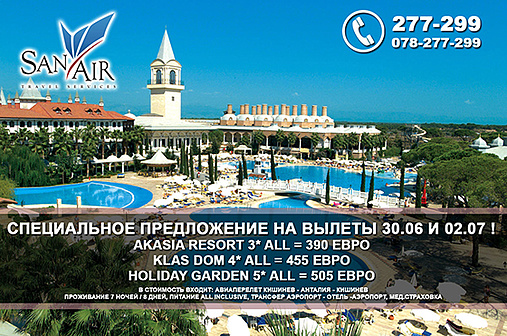 Специальное предложение на вылеты 30.06. и 02.07. от San Air!!!