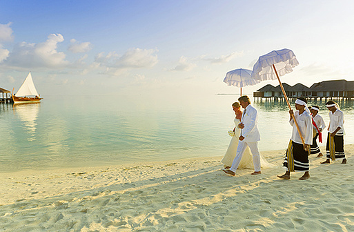 Мальдивы – это настоящий рай на просторах Индийского океана, главным украшением которого служат песчаные пляжи, прозрачная лазурь теплого моря и удивительные пещеры из кораллов. Часто после торжественного бракосочетания молодожены именно здесь находят ту романтику и покой, которых в родных пенатах так не хватало. Свадебную церемонию можно провести на Мальдивах практически сразу же после торжественной регистрации на родине. Свадебные церемонии на Мальдивах — это незабываемый обряд, который оставит у молодоженов воспоминания на всю жизнь.