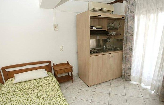 расположен в центре Лептокарии, возле Центрального парка, с игровыми площадками для детей. Рядом находятся пешеходная улица, магазины, террасы, бары, железнодорожные и автобусные станции, что позволяет каждому организовать отдых по своему вкусу. Расстояние до пляжа составляет 300 м.Студия: для 2, 3, 4 человека с кухонным боксом, оснащенным необходимой посудой, ванной комнатой, кондиционером, балконом или террасой. Находится в 100 м от отеля (тип виллы)