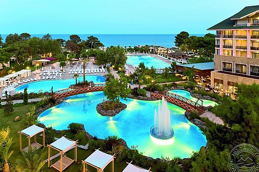 Территория большая, но все компактно и удобно расположено. Большой выбор спортивных мероприятий, качественный сервис, разнообразное питание. Есть детская площадка, аквапарк, детские клубы, луна-парк, для малышей предусмотрено детское питание. Отель предлагает VIP-сервис для гостей, проживающих в виллах.Питание